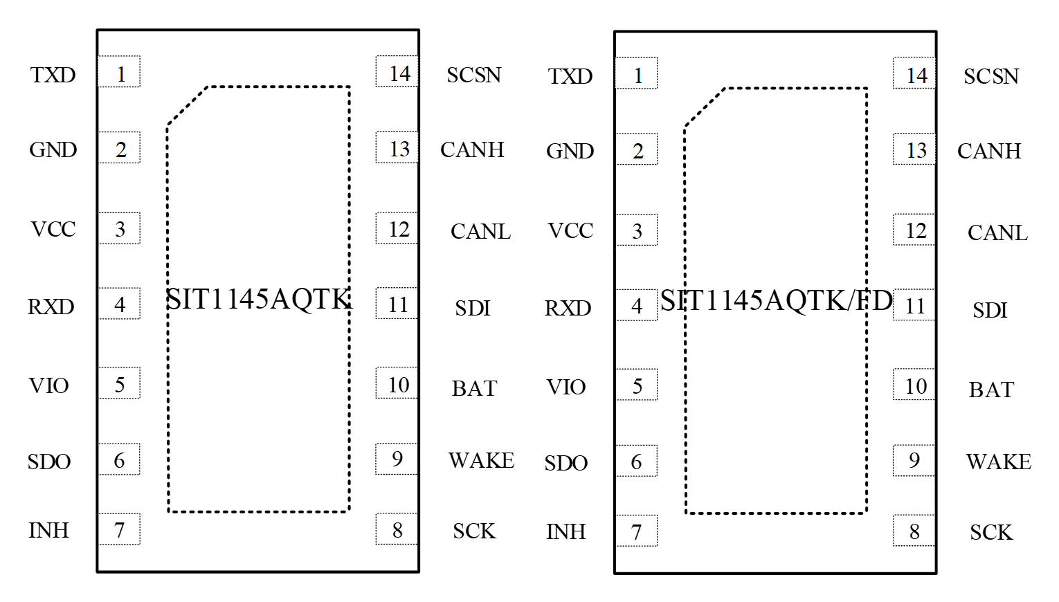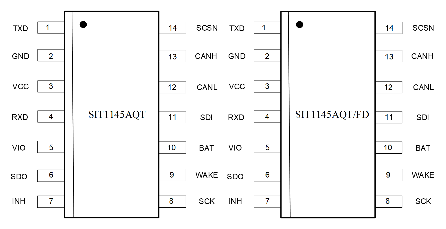 SIT1145AQ引腳定義及封裝示意圖: