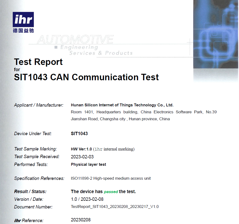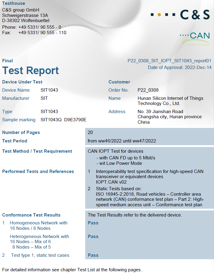 二、SIT1043Q CAN收發(fā)器通過德國益馳CAN通信一致性測試