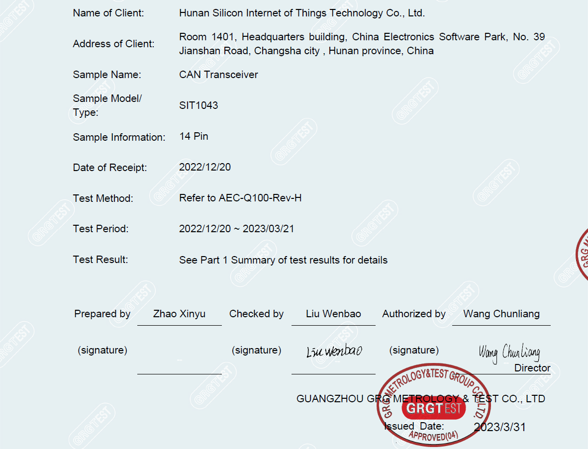 一、SIT1043Q CAN收發(fā)器通過第三方實驗室AEC-Q100認證