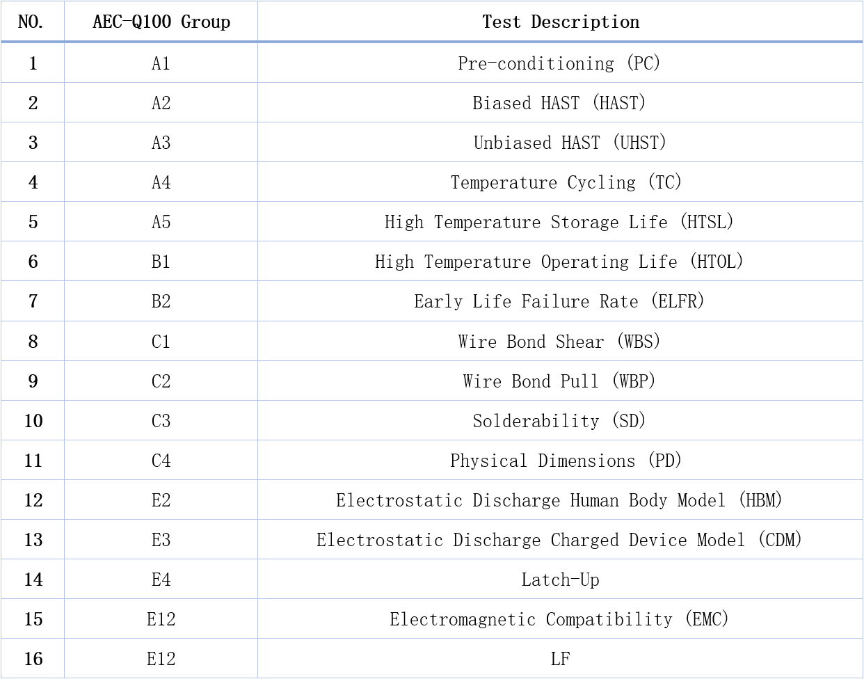 SIT1043Q CAN收發(fā)器AEC-Q100測試內容匯總如下表所示。