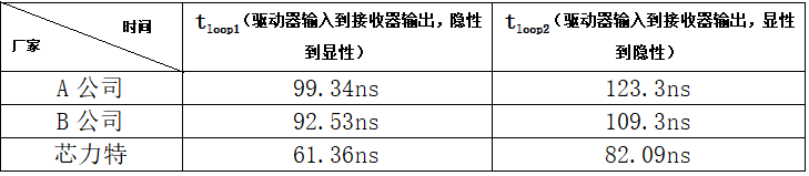 對(duì)比目前市面上幾家進(jìn)口公司的同類芯片的環(huán)路延時(shí)數(shù)據(jù),如下表所示:(以下數(shù)據(jù)在相同環(huán)境下測(cè)試)