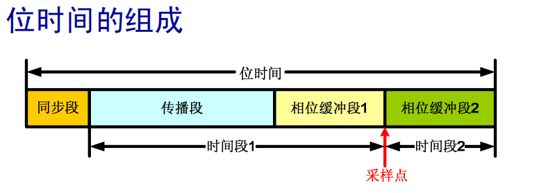 CAN總線通信中每一位的時(shí)間由4部分組成,即同步段、傳播段、相位緩沖段1、相位緩沖段2,劃分為3段。