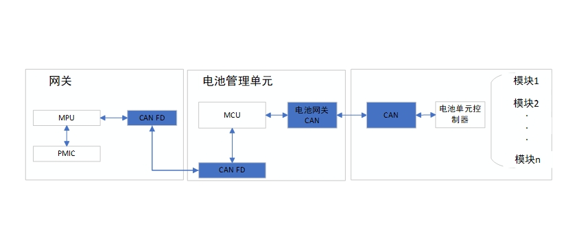 網(wǎng)關(guān)通過CAN FD芯片與電池管理單元進行通信。